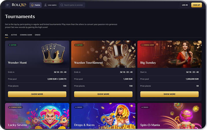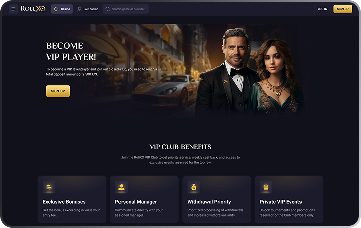 Lifestyle fit for the elite — that’s what RollXO is all about. Enjoy an extensive VIP program and the exclusive XO club with numerous privileges for top players. Take advantage of various bonuses: generous welcome package, luxurious weekly bonuses, Lucky Box, and Lucky Draw. The best-kept secrets are the most luxurious — are you in on the secret?