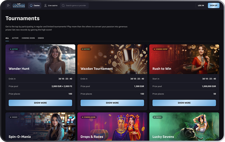 SlotLounge is a sleek, high-converting brand built to keep players coming back. From Lucky Box and Lucky Spin to VIP perks and crypto-friendly payments — everything is crafted to boost engagement. Add a generous welcome pack and regular tournaments, and you’ve got a top-tier destination for quality traffic.