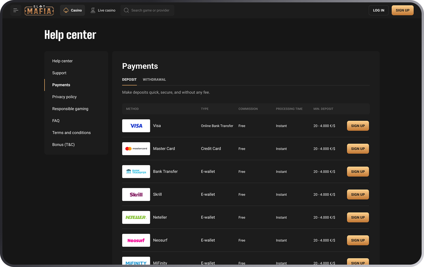 At Slotmafia, the bonuses are so generous, it feels almost illegal! The casino’s VIP Club is loaded with premium benefits, offering high-level perks, personalized offers, and unbeatable cashback. Whether you’re chasing big wins or enjoying the ride, you’ll always have access to 24/7 top-tier support. Truly the deal you can’t refuse.