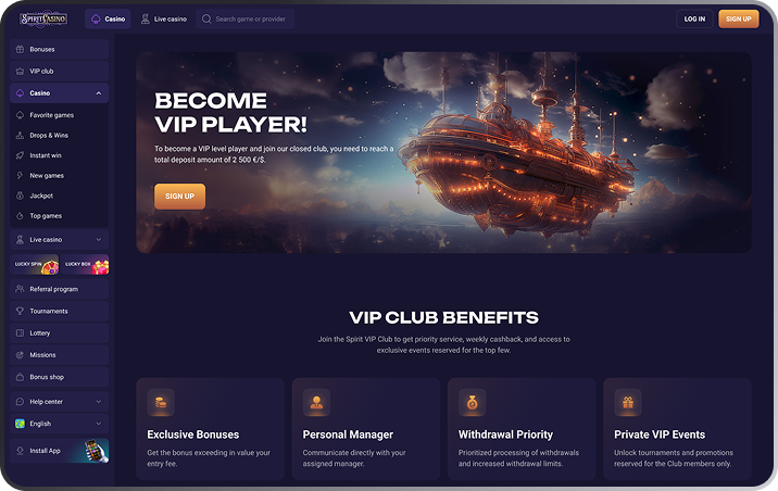 Step into the world of Spirit Casino, where electrifying chills meet supernatural rewards! The VIP Club offers magical benefits, from exclusive bonuses to high-level perks that elevate your experience. With every spin, progress is unstoppable! Plus, our 24/7 support ensures you're always taken care of